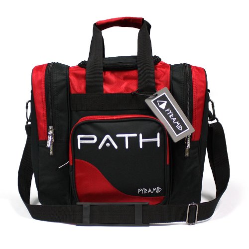 Pyramid , Pyramid Bowling emerges on to the market bringing high quality bowling products at affordable prices.Compared to other bowling bags in this price range the Pyramid Path Single Deluxe Black/Red is no comparision, check out these features:Constructed with heavy duty 600 + 840 denierAdjustable, removeable shoulder strap with non-slip padWelded steel hardwareWebbed nylon carrying handles with padded wrapRemoveable polyurethane foam ball cupSeparate compartment stores and protects shoes up to U.S. men's size 16Large accessory pocketDeluxe bag tagPyramid quality2 year warrantyProduct Type: Bowling Bags