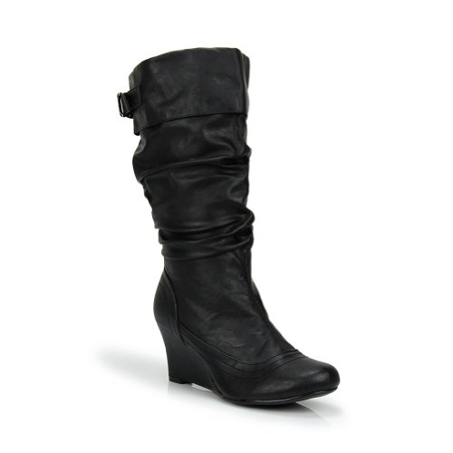 Are you looking for the best offers in Slouchy Mid Calf Buckle Strap Wedge Boot Black Best Deals ? You come to the right place! After researching deeply I found Amazon store that is the best and the lowest price as I can find from online store.