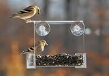 Duncraft , Birds as large as a cardinal can sit at this feeder and enjoy a meal. It will also attract chickadees, nuthatches, goldfinches, titmice for a wonderful array of smaller birds. Suction cups fasten securely to any window. 6 inches high , 5-1/2 inches wide, 4 inches deep. Holds 1/2 - to 1 lb of seed. ...