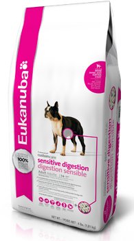 Eukanuba Custom Care, While they do not like to admit it, even healthy dogs can sometimes experience digestive upset. Eukanuba Sensitive Stomach Formula Dry Dog Food is a unique, complete and balanced diet designed to provide nutritional support for adult dogs experiencing gastrointestinal signs such as diarrhea, flatulence, or vomiting. It contains a special blend of fibers that aids the digestive process and helps maintain a healthy and balanced intestinal environment, as well as a blend of ingredients that support