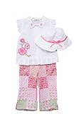 bt kids , 3 piece set / White sleeveless eyelet top has floral applique and embroidery / Pants have inside adjustable waist / Matching hat / By: B.T. Kids ...