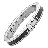 Here are some of the great features of Solid Mens Stainless Steel Carbon Fiber Bangle Handcuff Bracelet Jewelry (Silver Black)- Width: 12 mm.