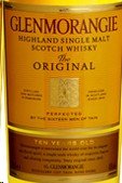 Glenmorangie , Gold colored and light bodied- citrus notes blend with peach, honey, a dry sherry nuttiness, and a kiss of heather- soft finish with light strokes of peat and smoke., , Producer's Tasting Notes, Aroma: Imagine yourself in an Italian garden surrounded with mandarin, lemon, apple, pear and peach trees, their fruit ripening in the sun. Add to this the scent of vanilla ice cream, then enjoy the herbal aromas of geranium and wild mint growing nearby., , Add water to The Original and you wander into a flower garden with lemony bergamot, apricot and mandarin. Floral notes of geranium, sweet honeysuckle and piquant narcissus mix with mint and the herbal essence of eucalyptus, nutmeg and ginger., , Taste: Savour the fruits of the Italian garden as creamy vanilla slips like liquid silk over the tongue as peaches and cream, mandarins and lemons effervesce in the mouth. Aromatic essences of fennel and nutmeg tantalise with crumbly almond and coconut that gives way to a nectar that envelops all the fruit, spice and nut flavours in a honeyed caress., , Finish: The charming sweetness of delicious juices is left on the tongue